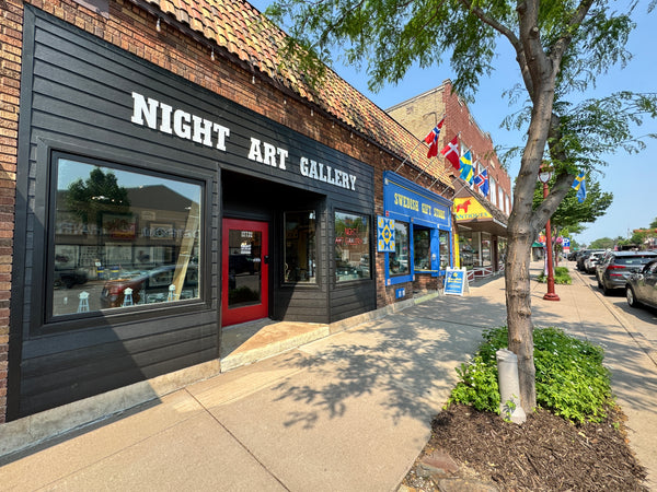 Today, Night Art Gallery operates during daytime hours alongside Swedish Gift Store, offering original paintings, prints, and framed works from Scandinavian and American artists. The spirit of "night" remains—our name is a nod to where we started and where we're headed.