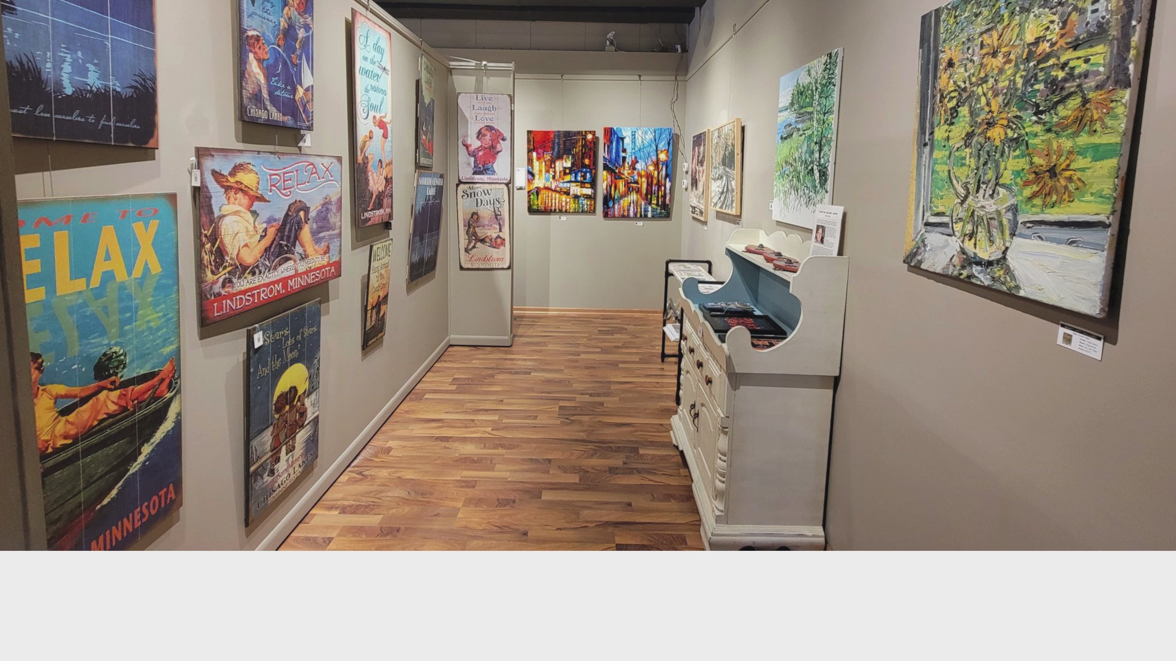 See art by local, regional and national artists. Located in Lindstrom, MN. 10-5pm daily.